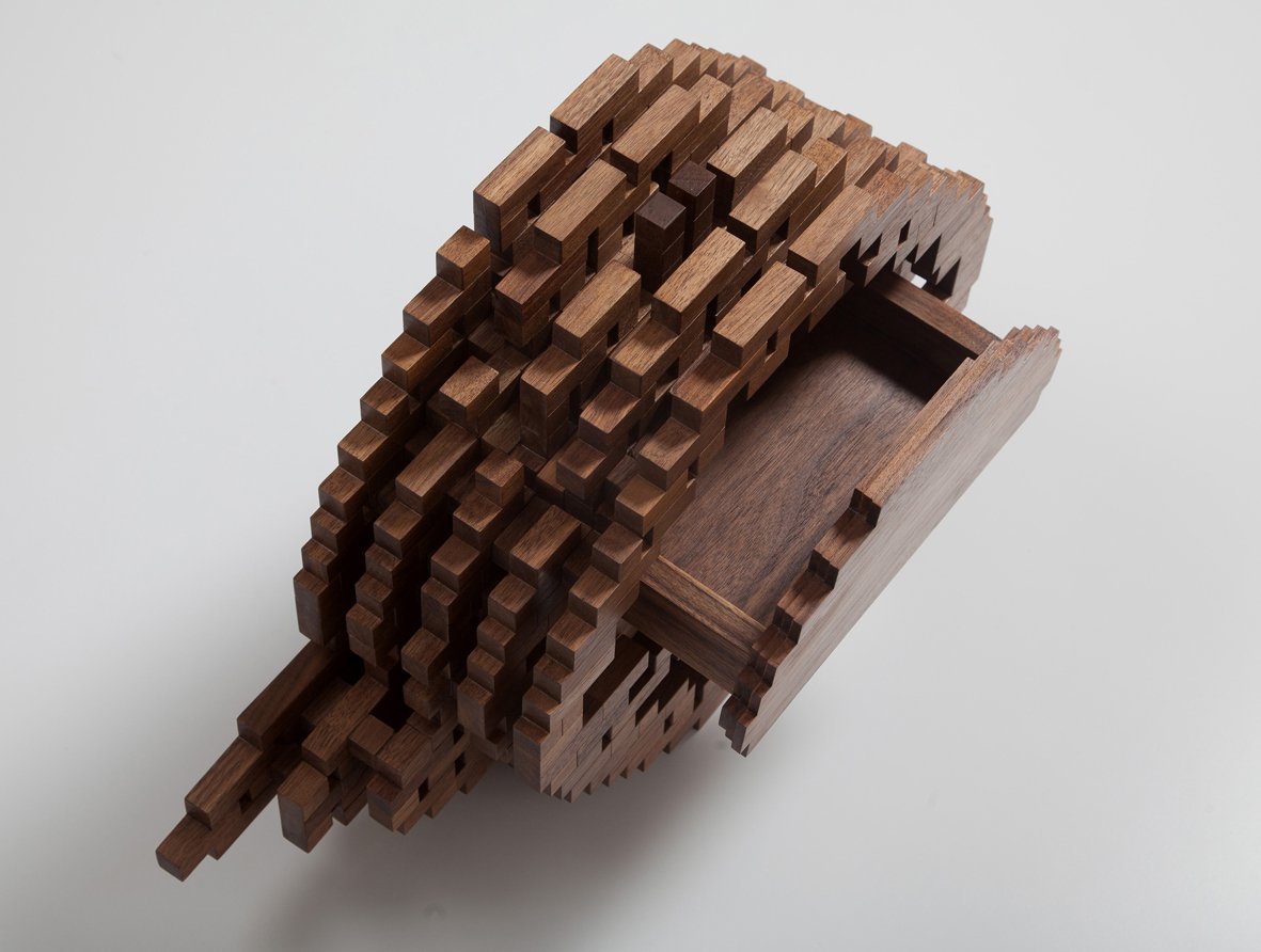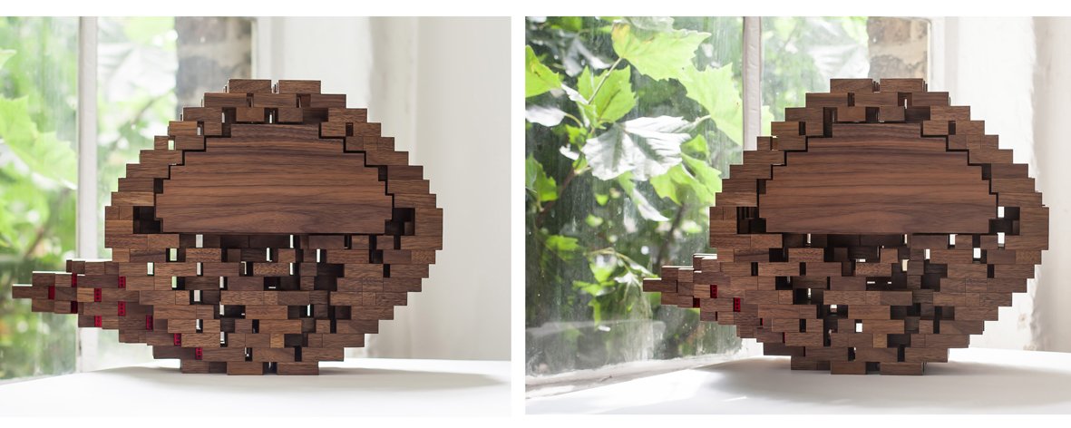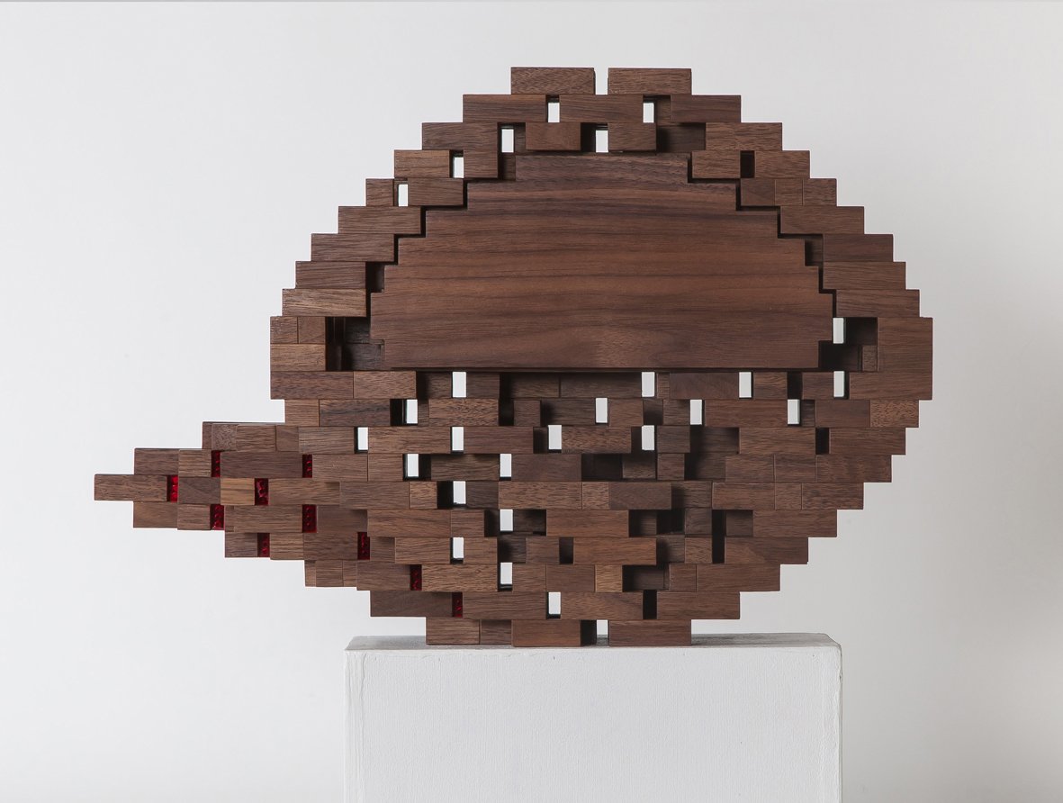 Scattered Tribe 1 - Black Walnut, Red Mirror, Red Plexiglass - 32 x 47 x 14 cm - 2017 & 2018