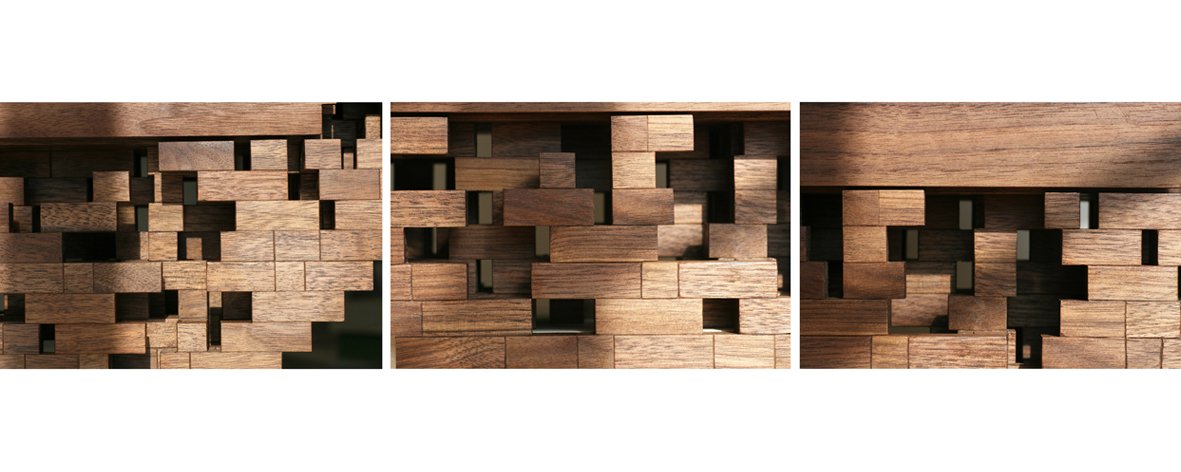 Statement : The word "tribe" consists of three letters in Persian language and narrates silently with three scattered letters. It tells the story of a tribe that carries the trusted burden on their shoulders compassionately despite whatever goes to them. Every letter of this word is visualized solely, detached from the other letters, in a red sorrow and solitude and has a porous figure. The thorough opening of the pores happens at one point and at a certain height. "Hope" is the bright name of this point.