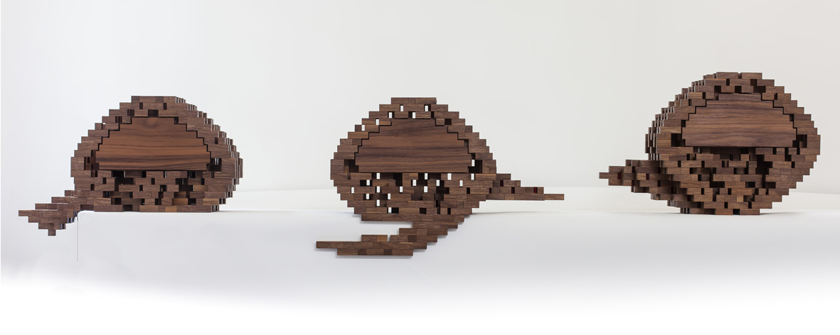 Scattered Tribe 2 - Black Walnut, Red Mirror, Red Plexiglass - 34 x 55 x 14 cm - 2017 & 2018